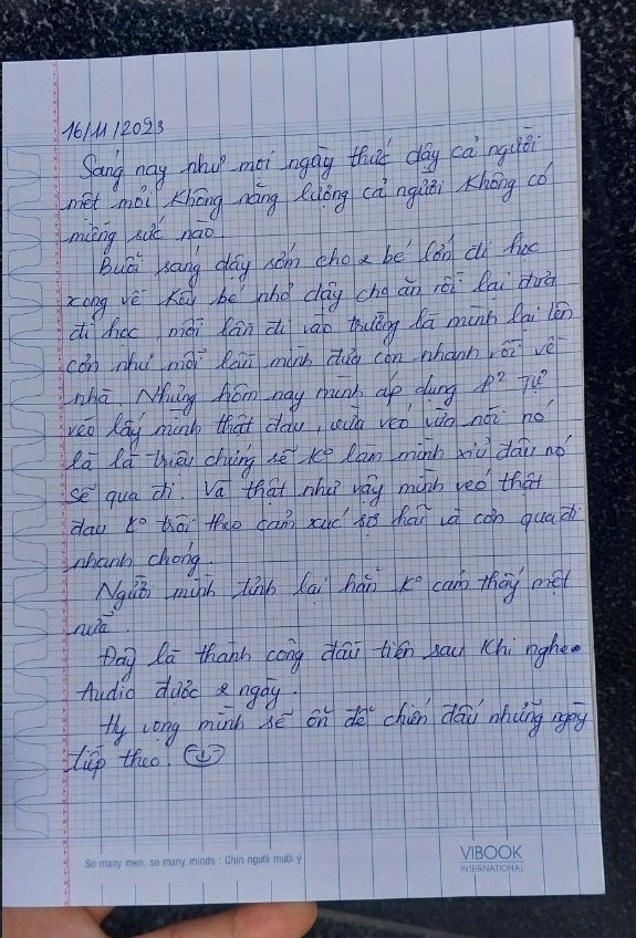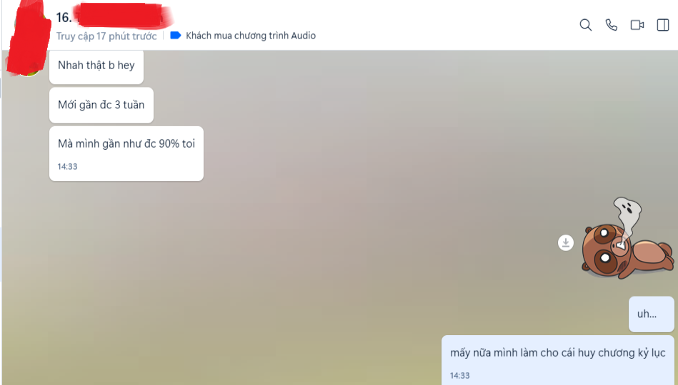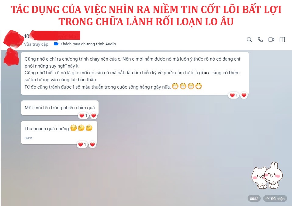 Nhưng những gì xảy ra khiến chúng mình đi từ ngạc nhiên này tới ngạc nhiên khác. Các bạn báo cáo chỉ cần nghe một lèo hết chương trình là đỡ luôn 90%, các triệu chứng giảm hẳn.