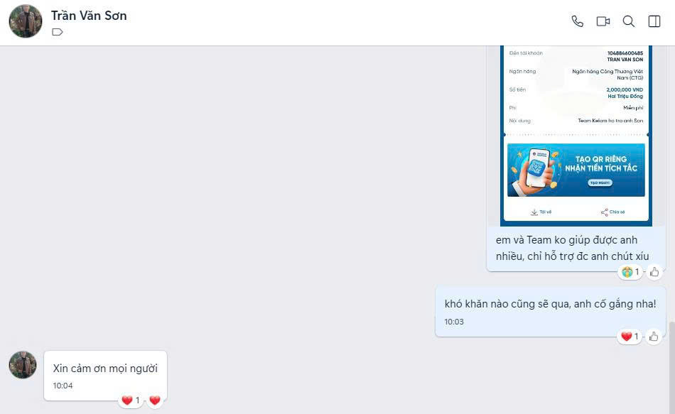 Hiện Team mới chỉ liên hệ được với 3 người. Trong cộng đồng có ai gặp khó khăn sau lũ đừng ngần ngại liên hệ với Team để được hỗ trợ. Ai cũng có lúc trải qua khó khăn cần được người khác giúp đỡ, các bạn đừng ngại nha!