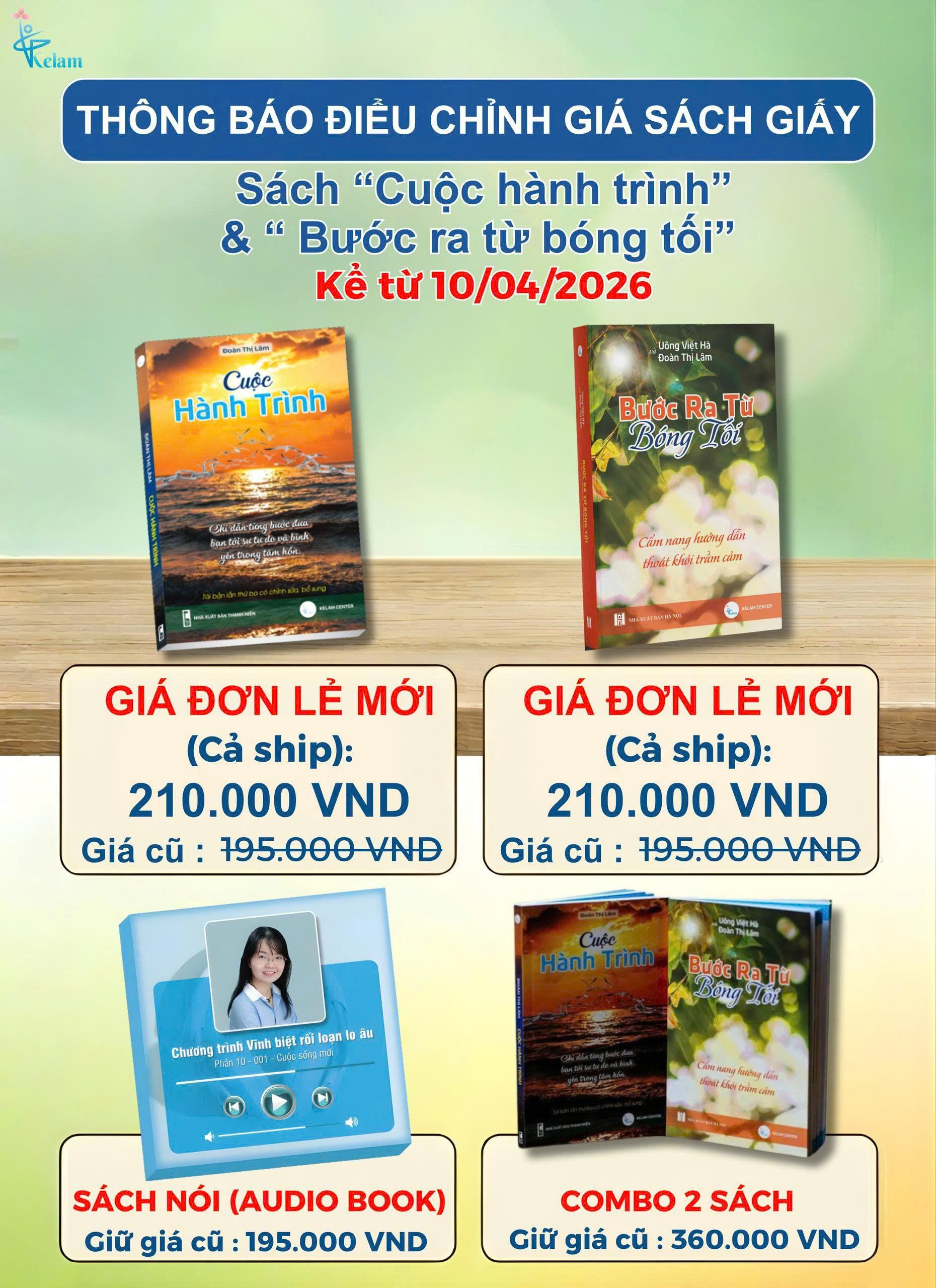 Thông báo điều chỉnh giá sách giấy từ ngày 10/04/2026 tại Kelam Center